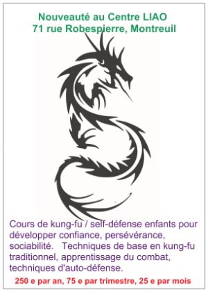 * instructeur kung-fu FWDA (fédération de wu-shu et disciplines associées),